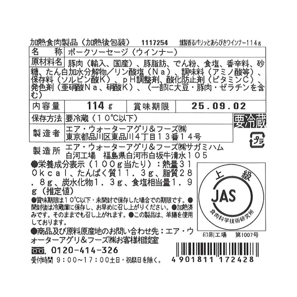 パリッとジューシーなあらびきウインナー。JAS上級品です。