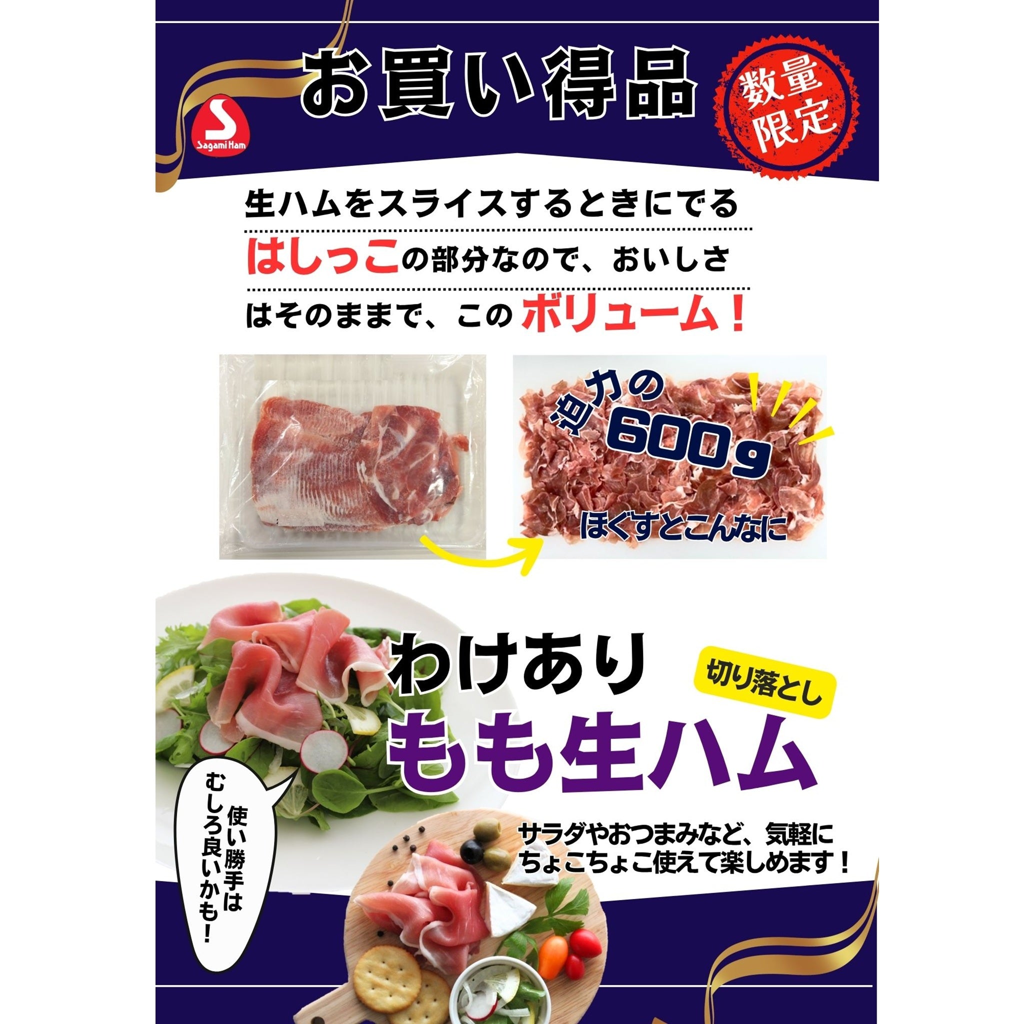 もも生ハムを製造する際に発生する「端材部分」を有効活用した生ハムです。