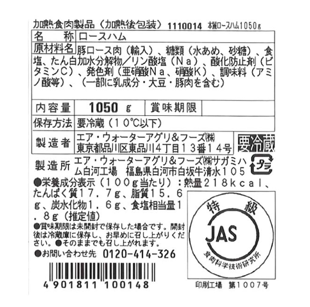 | 製造所 | エア・ウォーターアグリ&フーズ(株) サガミハム白河工場 |