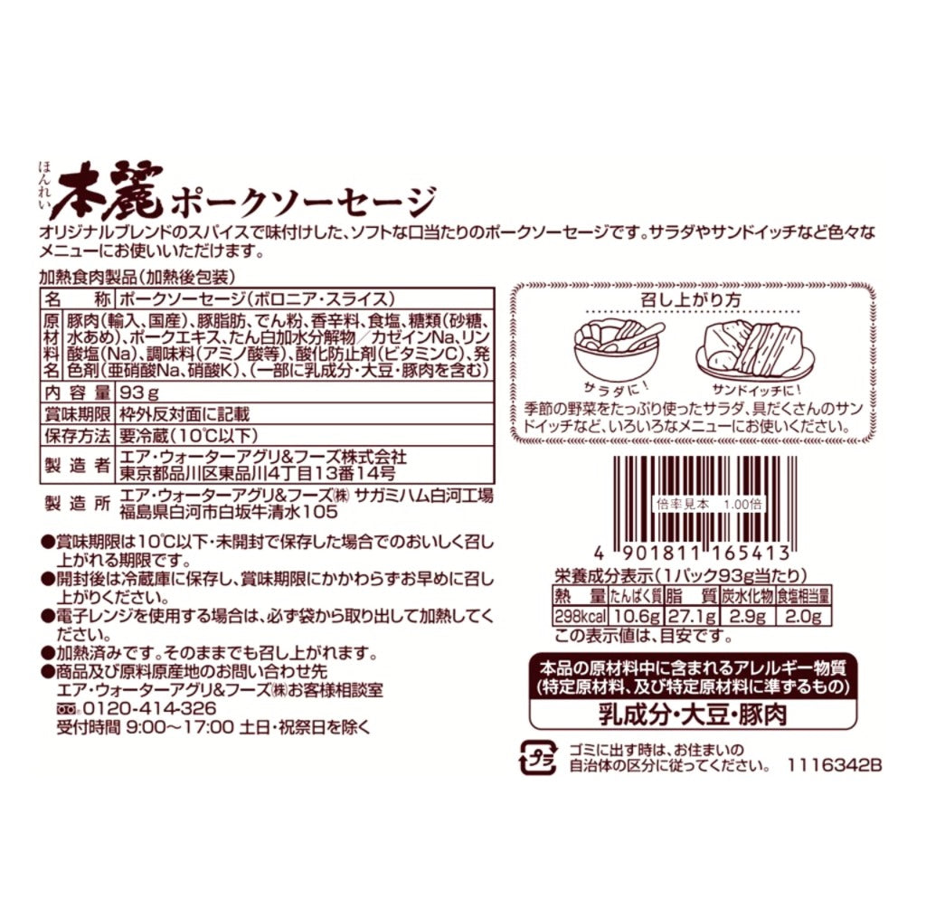 本麗ポークソーセージスライスパック93g