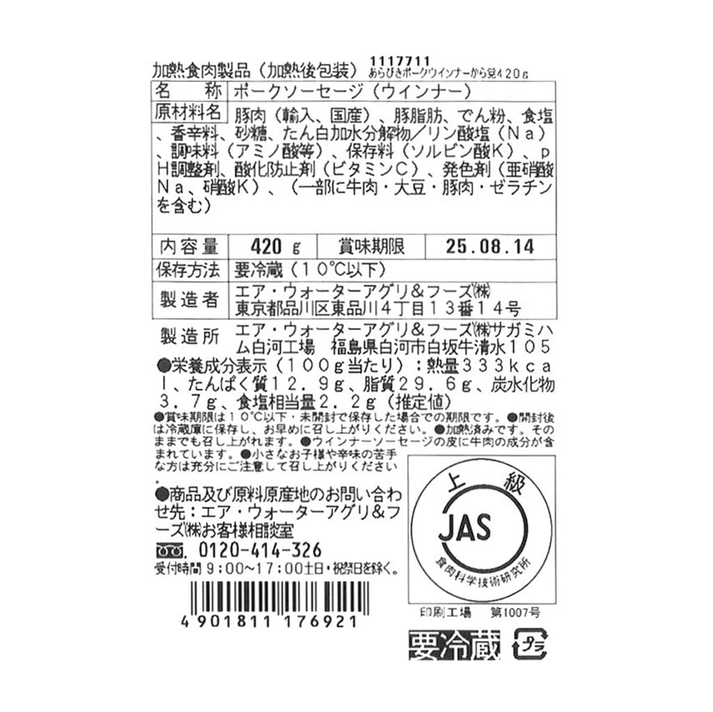 | 製造所 | エア・ウォーターアグリ&フーズ(株) サガミハム白河工場 |