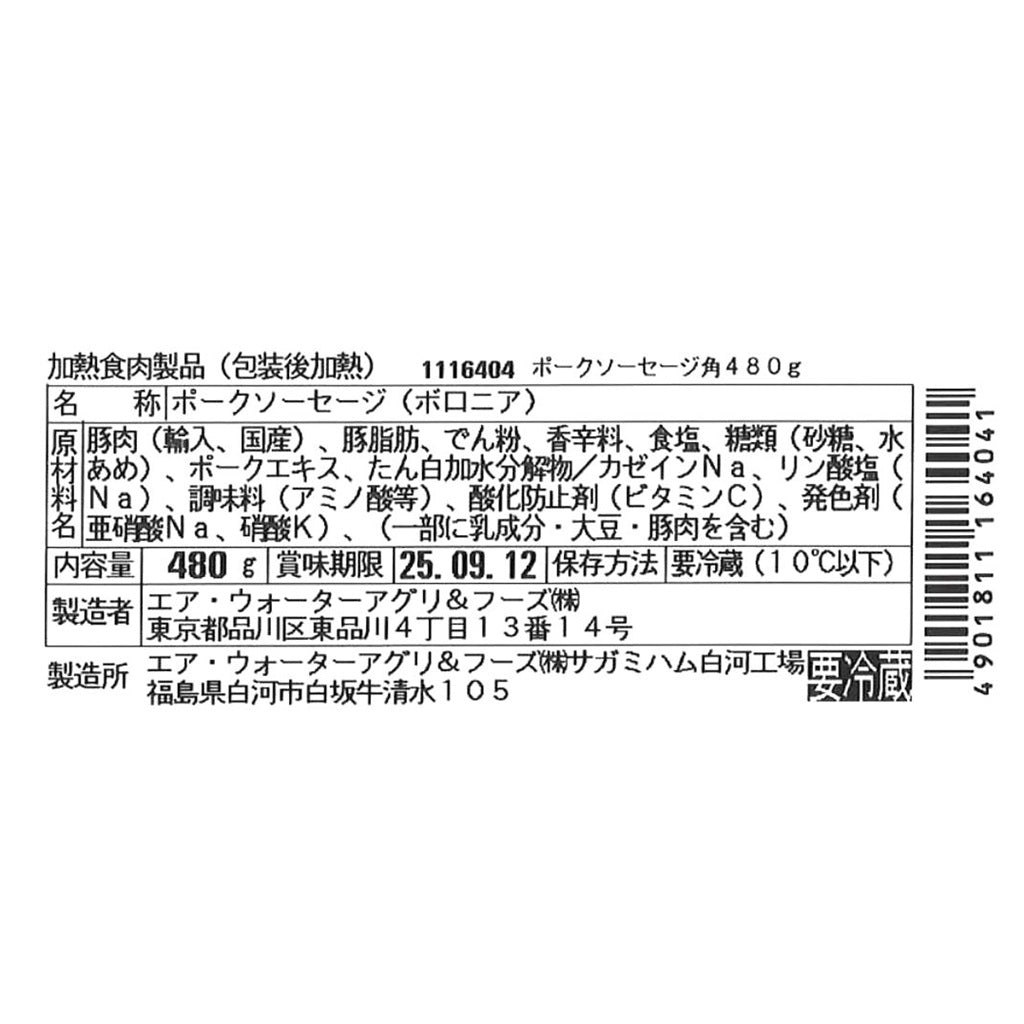 | 製造所 | エア・ウォーターアグリ&フーズ(株) サガミハム白河工場 |