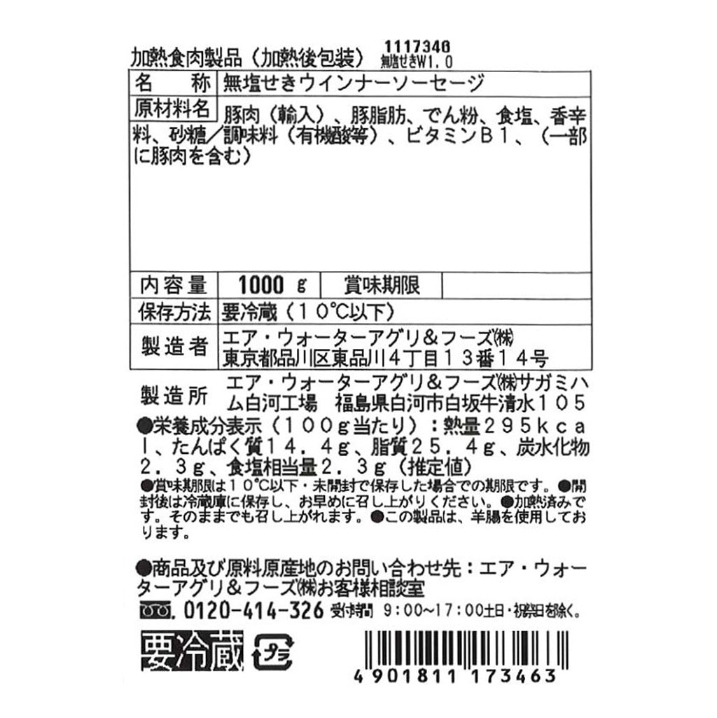 無塩せきウインナー1kg【お届け日指定は、お控えください】