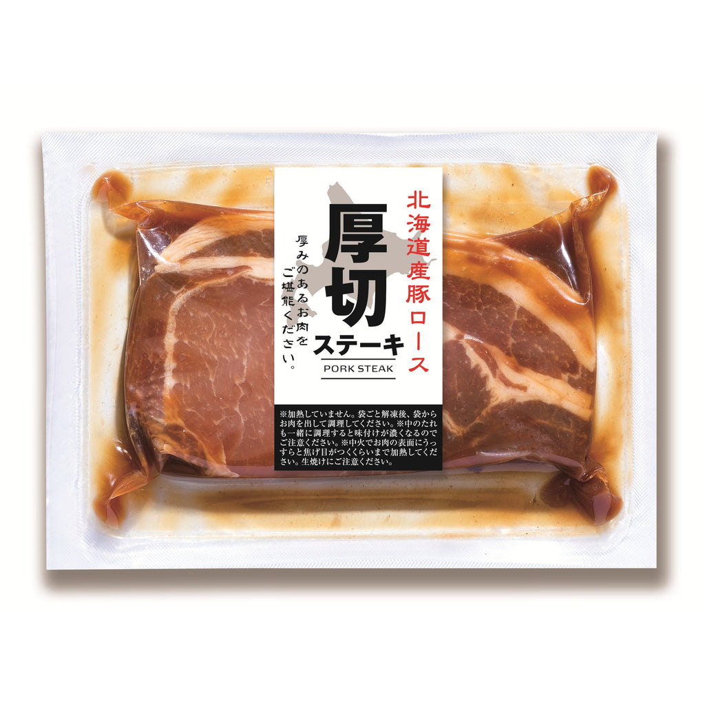 北海道豚ロース肉を使用した味付けポークステーキ用です。